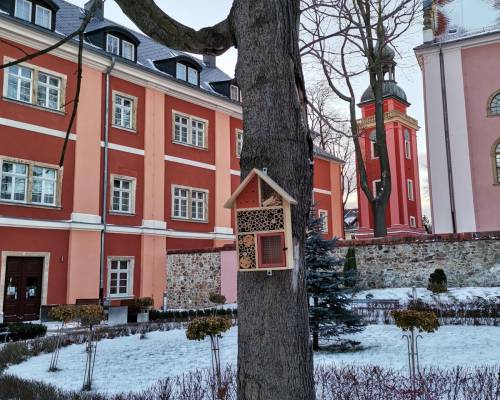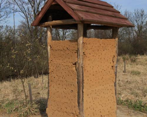 Przedstawione poniżej fotografie: pasieka w Polanicy, domki dla dzikich zapylaczy w Cieplicach, Głogowie, domki gliniane dla zapylaczy – teren leśny Huty Głogów.